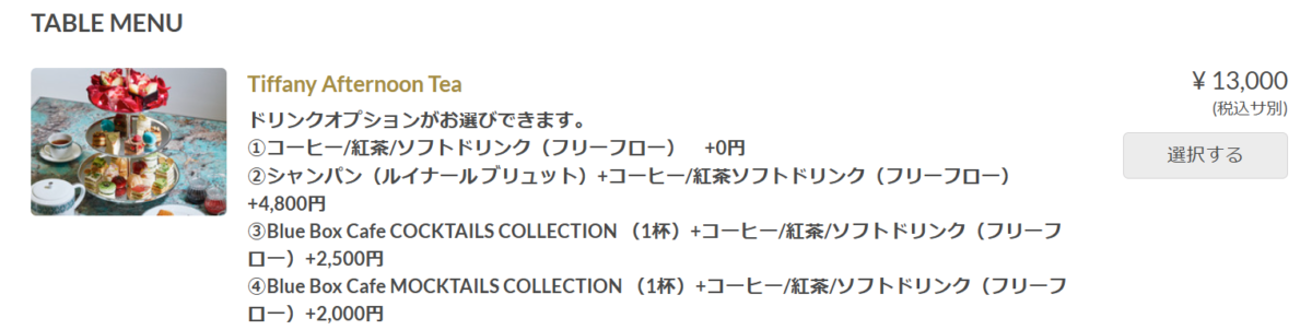 ついにアフタヌーンティー13,000円(プラスサービス料10%)の世界に来たのね・・・8000円とで超ビビっていた時代が懐かしい。